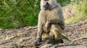 In the service of scienceThanks to GPS technology, the researchers are able to monitor entire groups over long periods and thus investigate how the animals act collectively. To do so, they provide them with transmitters like the one shown here, attached to a baboon’s wrist.
